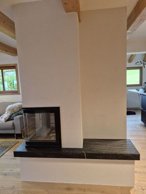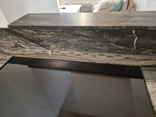 Heizeinsatz mit Naturstein Heizeinsatz mit Fliesen