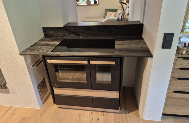 Küchenherd mit Sommerhuber Fries-Kacheln und